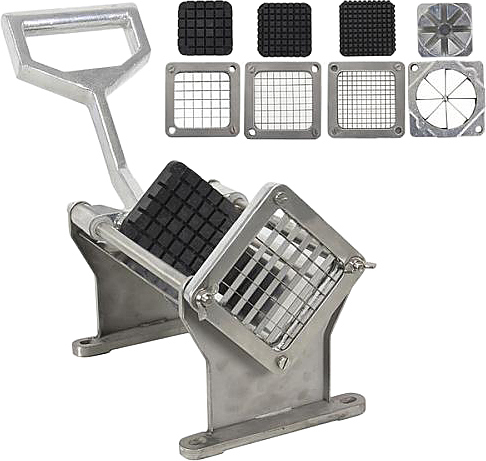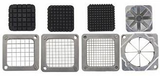 В комплект поставки входят 4 матрицы 80х80 мм с размерами ячеек: 8х8 / 10х10 / 12х12 мм и нарезка дольками (по-деревенски).