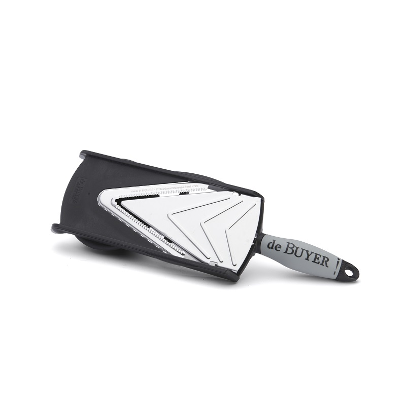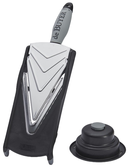Мандолина De Buyer 2011.00 используется на предприятиях общественного питания, торговли и пищевых производствах для нарезки овощей, фруктов и других продуктов. Модель оснащена толкателем и V-образным лезвием для удобной шинковки и нарезки. Материал изделия - высококачественная нержавеющая сталь и полимерный материал.