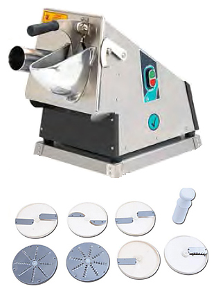 В комплекте 5 сменных дисковых ножей: 2 терки, 2 для нарезки кубиками и 1 для кортофеля фри.