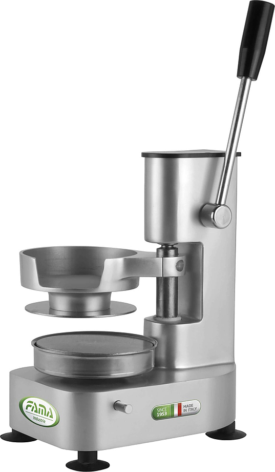 Пресс для гамбургеров Fama FHA 400 используется для формирования мясных заготовок круглой формы на предприятиях общественного питания, торговли и пищевых производствах. Материал корпуса - анодированный алюминий, материал ёмкости для фарша - высококачественная нержавеющая сталь AISI 304, материал стойки и шестерни - нержавеющая сталь, материал нижней основы - высококачественный пластик.