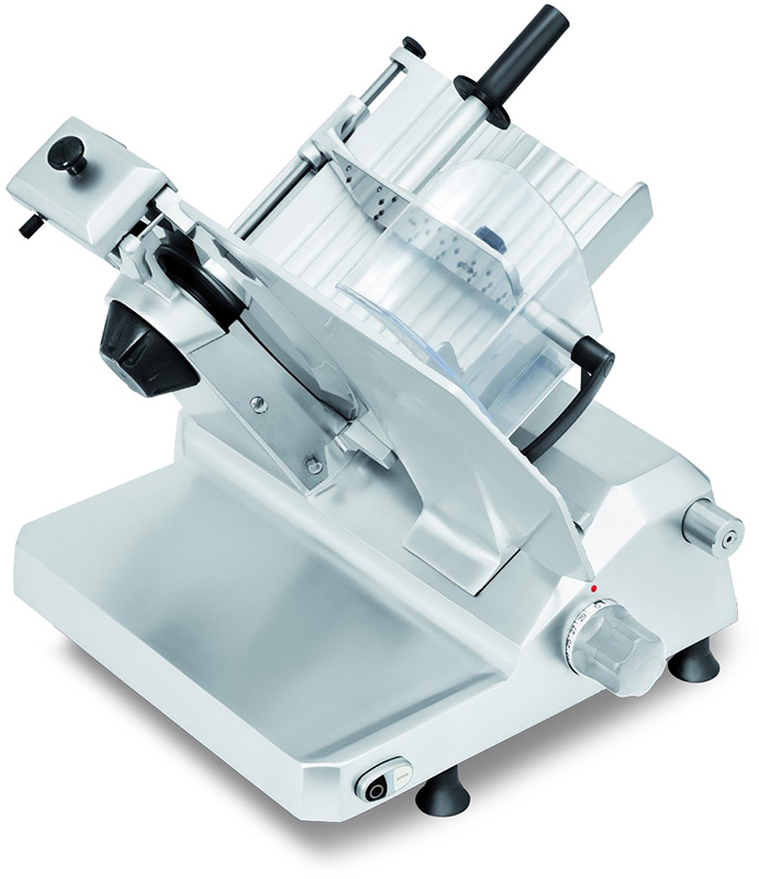 Слайсер Rheninghaus Mondial 350 используется на предприятиях общественного питания и торговли для нарезки колбас и мясных деликатесов. Модель оснащена затачивающим устройством, позволяющим постоянно держать режущую кромку ножа острой, и толкателем. Внешние детали выполнены из алюминия, толкатель - из пищевой нержавеющей стали.