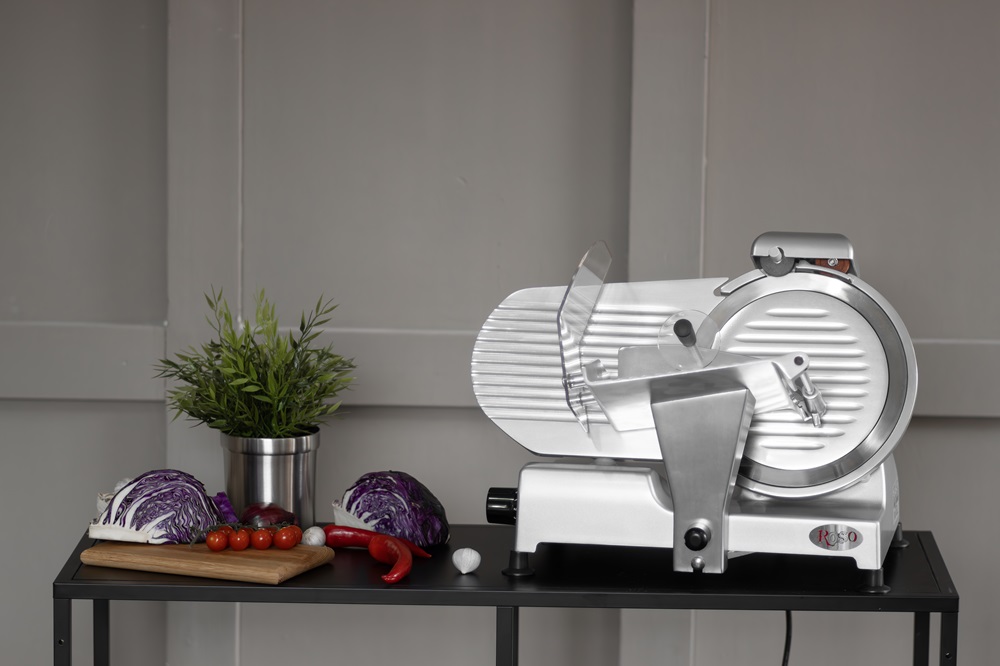 Слайсер Rosso 250ES-10 предназначен для нарезки продуктов на ломтики заданной толщины на предприятиях общественного питания и торговли. Корпус выполнен из нержавеющей стали.