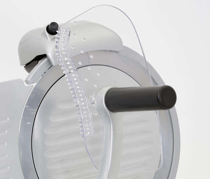 RGV Luxury 25 GS PROF применяется для нарезки на ломтики мяса, сыра, колбасных изделий и других продуктов питания на предприятиях общественного питания, торговли и пищевых производствах. Модель оборудована регулировкой толщины, вращающейся рукояткой и съемным заточным устройством. Материал корпуса - окрашенный алюминий, материал лезвия - закаленная сталь с тефлоновым покрытием, материал держателя - алюминий, материал крышки и лотка - литой анодированный алюминий.