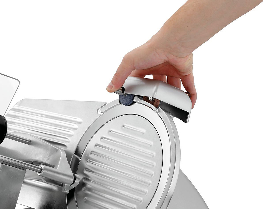 Слайсер Bartscher 275 Plus используется для нарезки колбасных изделий ломтиками на предприятиях общественного питания, торговли и пищевых производствах. Модель оборудована прижимным механизмом, заточным устройством и направляющей съемной наклонной кареткой с 2 ручками. Материал корпуса - алюминий, плексиглас и пластик, материал ножа - высококачественная нержавеющая сталь.