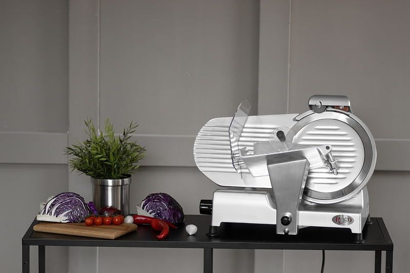 Слайсер Rosso HBS-220A предназначен для нарезки продуктов на ломтики заданной толщины на предприятиях общественного питания и торговли. Корпус выполнен из нержавеющей стали.