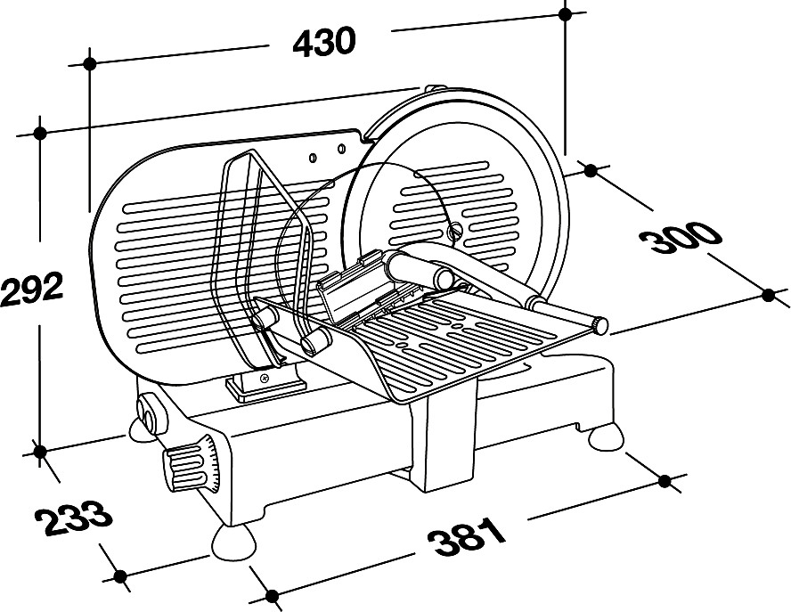 Профессиональный мотор с функцией принудительной вентиляции исключает возможность перегрева устройства, а также делает его работу практически бесшумной. Поддон для продуктов, перемычка для регулирования толщины среза и кольцо фиксации лезвия выполнены из алюминия, отполированного путем анодирования, что обеспечивает их гигиеническую чистоту и защиту от коррозии.