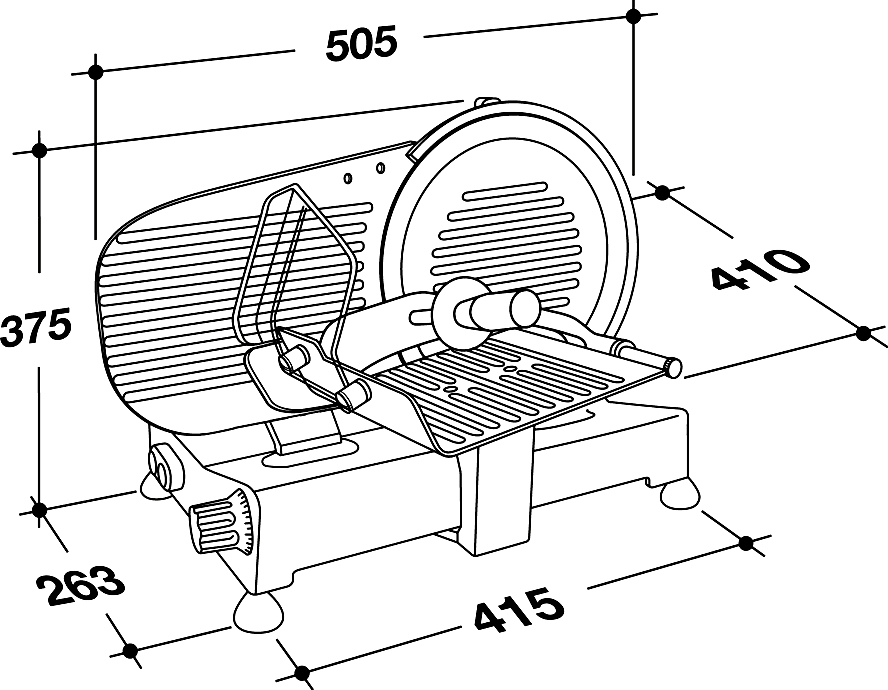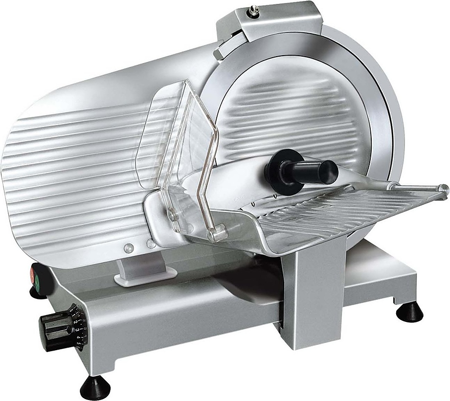 Профессиональный мотор с функцией принудительной вентиляции исключает возможность перегрева оборудования, а также делает его работу практически бесшумной. Слайсер оснащен фиксированным устройством для заточки ножа с двойным наждаком. Поддон для продуктов и перемычка для регулирования толщины среза выполнены из алюминия, отполированного путем анодирования, что обеспечивает их гигиеническую чистоту и защиту от коррозии.