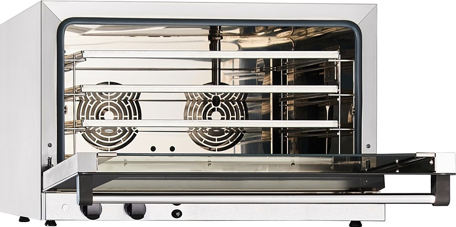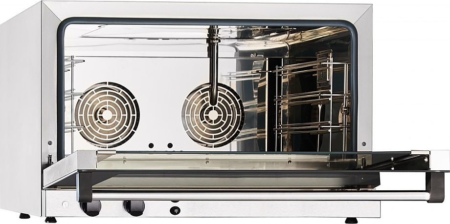 Конвекционная печь Abat КЭП-3 используется на предприятиях общественного питания, торговли и пищевых производствах для выпекания хлебобулочных и кондитерских изделий, приготовления и разогрева различных блюд. Циркуляция горячего воздуха внутри камеры помогает равномерно приготовить блюда. Модель оснащена рубчатым электронагревательным элементом, откидной дверью с горизонтальной рукояткой, электромеханической панелью управления с 2 круговыми регуляторами и светодиодными индикаторами. Материал внутренней облицовки - высококачественная нержавеющая сталь AISI 304.