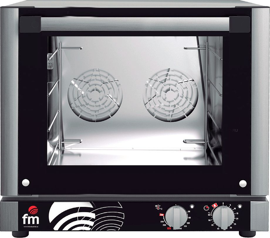 Конвекционная печь FM RX-424-H предназначена для выпекания различных кондитерских и хлебобулочных изделий, замороженных или предварительно выдержанных в расстоечном шкафу заготовок из теста на предприятиях пищевой промышленности, общественного питания и торговли. Модель оснащена универсальными направляющими, которые позволяют разместить листы для выпечки длиной от 420 до 480 мм и шириной до 370 мм. Корпус и камера выполнены из нержавеющей стали.