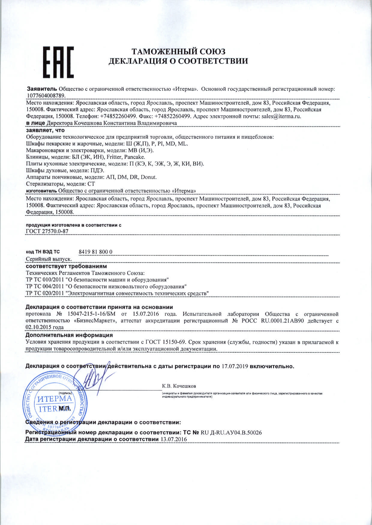 Расстоечный шкаф и подставка приобретаются отдельно.