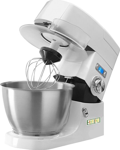 В комплект поставки входят крюк, лопатка и венчик. Стакан для блендера объемом 1,5 л и дополнительная чаша приобретаются отдельно.