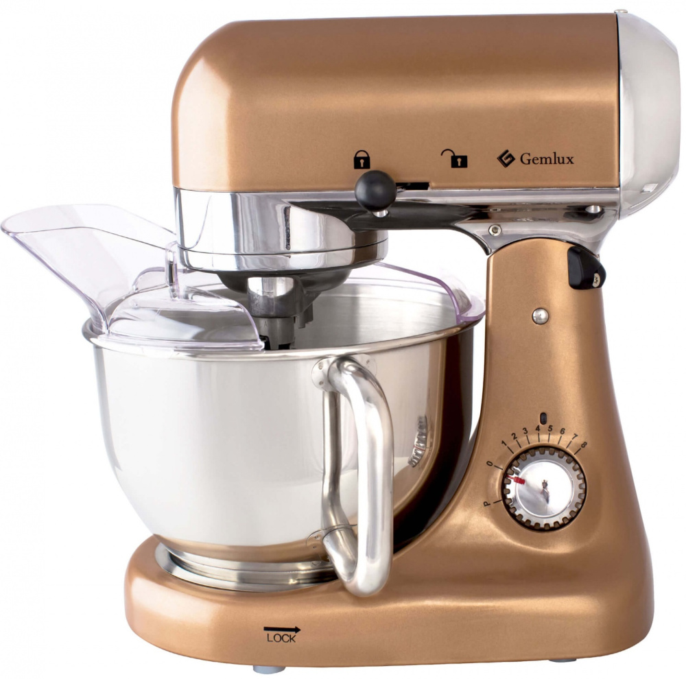 Планетарный миксер Gemlux GL-SM5G используется на предприятиях общественного питания, торговли, пищевых производствах, квартирах и частных домах для замеса различного вида теста, а также для приготовления пюре, майонеза, различных соусов, взбитых сливок и перемешивания готового фарша. Модель оснащена откидной головкой, съемной дежой, защитной крышкой, цельнометаллическим приводом и загрузочным желобом. Материал корпуса - окрашенный металл кремового цвета, материал дежи - высококачественная нержавеющая сталь.