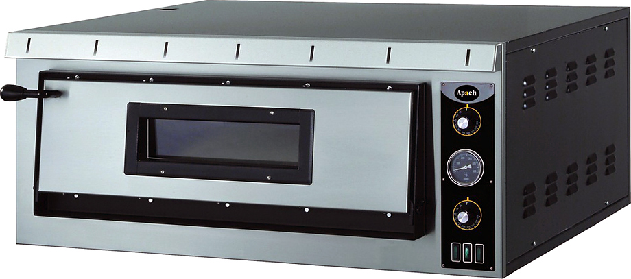 Печь для пиццы Apach AML4 серии "Large" используется на предприятиях общественного питания и торговли. Модель оснащена механической системой управления и 6 нагревательными элементами: 3 сверху и 3 снизу камеры. Лицевая панель выполнена из нержавеющей стали, боковые и задние панели - из окрашенной стали, рабочая камера - из стали с алюминиевым покрытием, под - из огнеупорного материала сертифицированного для пищевых продуктов.