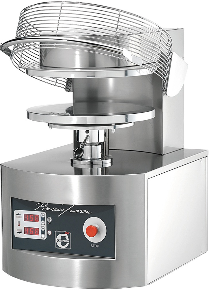 Пресс для пиццы Cuppone PZF/30DS используется на предприятиях общественного питания и торговли для изготовления основ для пицц. Модель оснащена 2 светодиодными дисплеями, показывающими температуру верхней и нижней пластин, таймером и функцией подсчета ударов. Под действием температуры пластин создается тонкий твердый крахмальный слой на внешней стороне теста. Корпус выполнен из нержавеющей стали, пластины - из хромированной стали.