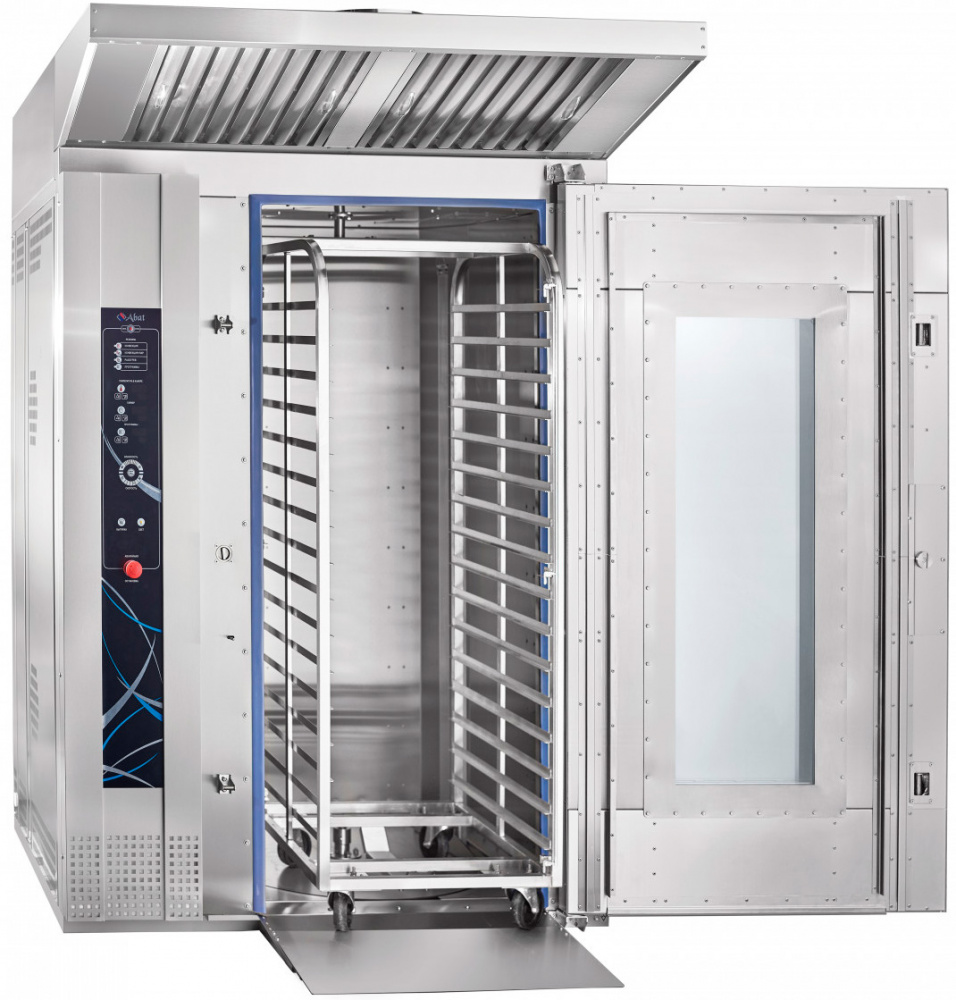 Ротационный пекарский шкаф Abat РПШ-16-2/1М предназначен для приготовления хлебобулочных и кондитерских изделий, различных блюд методом обработки паром и горячим воздухом по отдельности или комбинированно на предприятиях общественного питания и торговли. Модель оснащена панелью управления с таймером, возможностью корректирования программ во время выпечки и отображения информации о режимах работы и аварийных ситуациях.