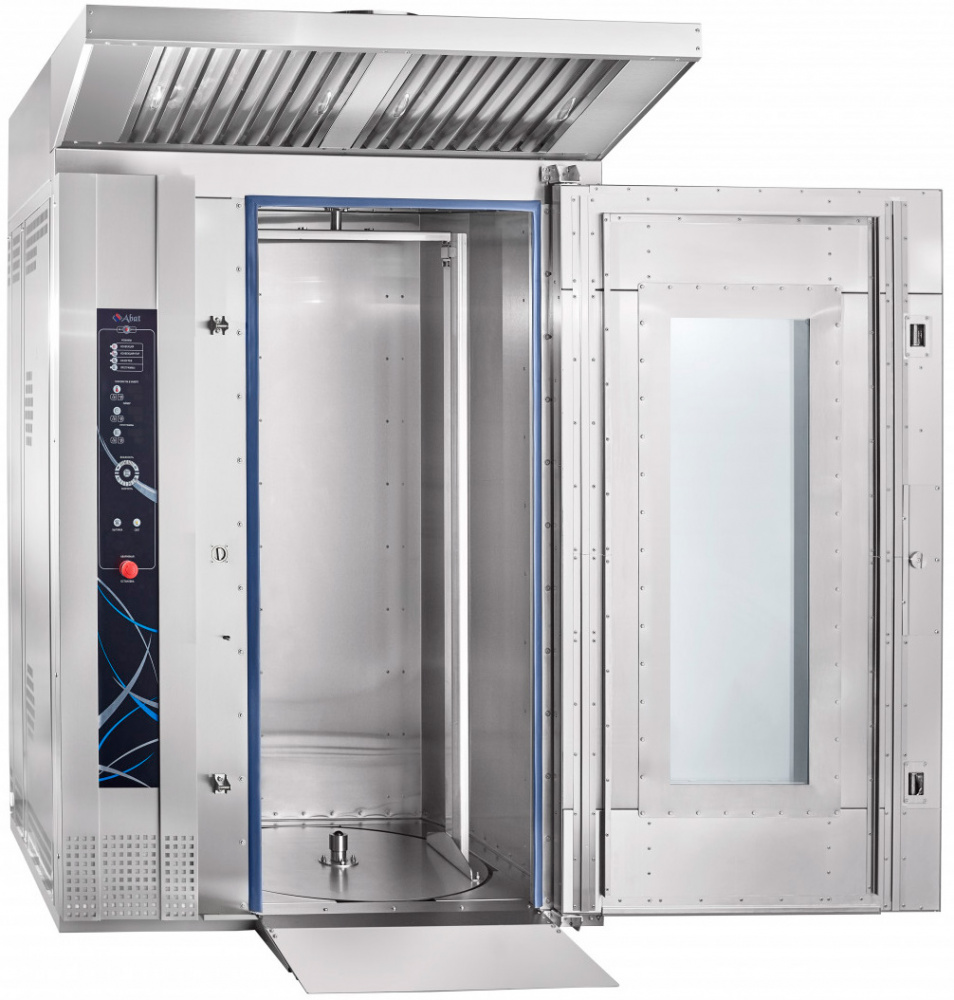 Ротационный пекарский шкаф Abat РПШ-18-8-6МР предназначен для приготовления хлебобулочных и кондитерских изделий, различных блюд методом обработки паром и горячим воздухом по отдельности или комбинированно на предприятиях общественного питания и торговли. Модель оснащена панелью управления с таймером, возможностью корректирования программ во время выпечки и отображения информации о режимах работы и аварийных ситуациях.
