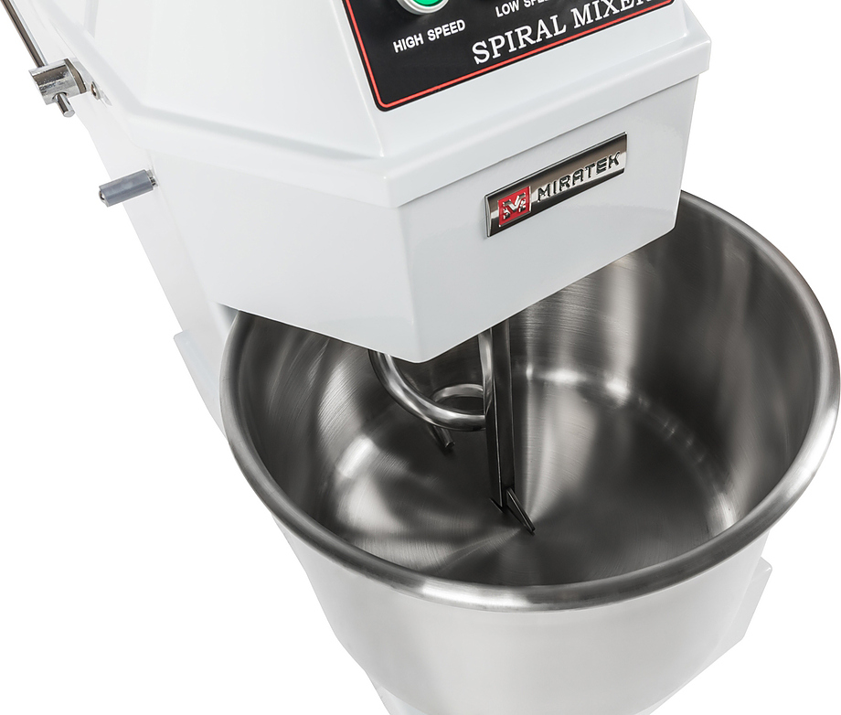 Спиральный тестомес Miratek PX-20 используется в пекарнях, кондитерских, на предприятиях общественного питания и торговли для замешивания теста с различной основой и консистенцией для выпечки большого ассортимента хлебобулочной продукции из пшеничного, ржаного и ржано-пшеничного теста.