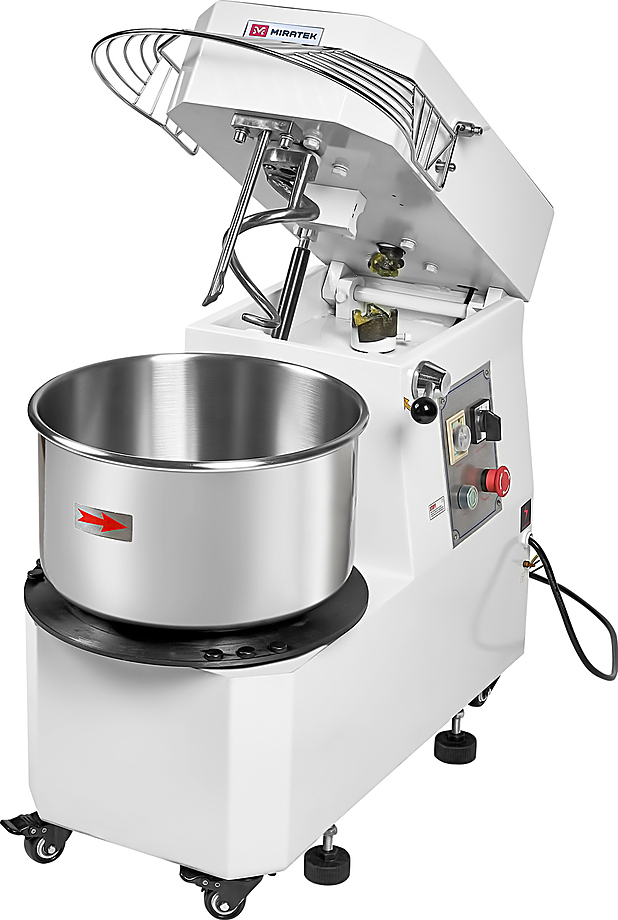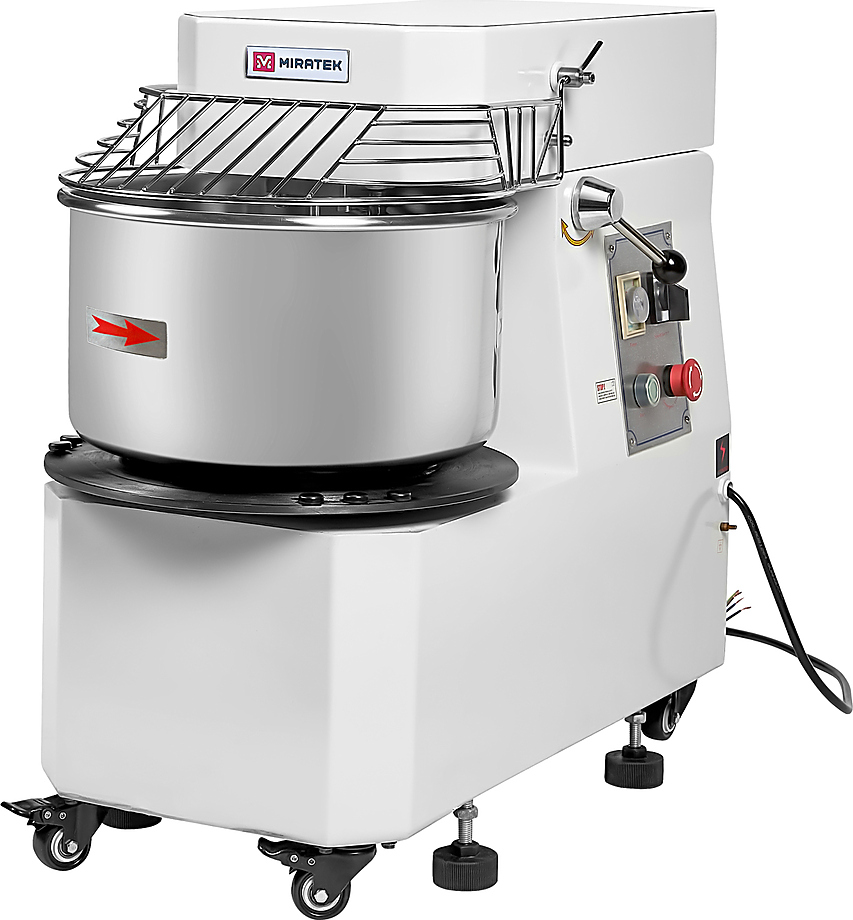 Спиральный тестомес Miratek PRS-30 используется в пекарнях, кондитерских, на предприятиях общественного питания и торговли для замешивания теста с различной основой и консистенцией для выпечки большого ассортимента хлебобулочной продукции из пшеничного, ржаного и ржано-пшеничного теста.
