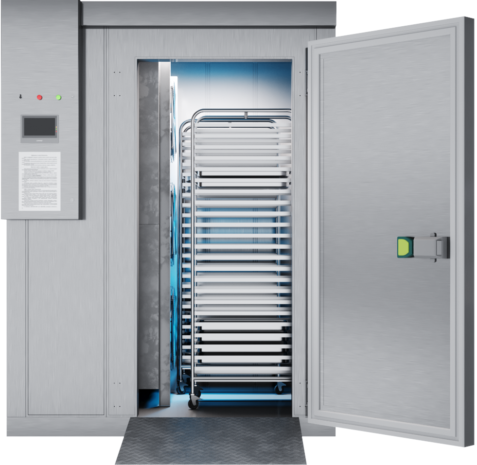 Камера шоковой заморозки POLAIR BCF 40.1.T2 inox предназначена для быстрого охлаждения и заморозки различных продуктов, прошедших тепловую обработку на предприятиях общественного питания, торговли и пищевых производствах. Модель с 2 дверьми. Материал изделия - высококачественная нержавеющая сталь.