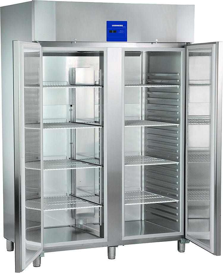 Холодильный шкаф Liebherr GKPv 1470 серии ProfiLine предназначен для охлаждения и кратковременного хранения скоропортящихся продуктов и напитков на предприятиях общественного питания и торговли. Модель оснащена электронным управлением и цифровой индикацией температуры. Внутренняя прокладка выполнена из хрома, никеля и стали, корпус и дверь - из нержавеющей стали, покрытие решеток - из пластика.