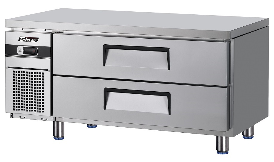 Холодильный стол Turbo air KUC12-2 предназначен для хранения овощей, полуфабрикатов из мяса и рыбы, а так же других скоропортящихся продуктов на предприятиях общественного предприятия и торговли. Сверхпрочная столешница шеф-базы изготовлена из цельного куска нержавеющей стали для повышения прочности. За счет использования специального слоя теплоизоляции на столешницу можно устанавливать любое тепловое оборудование. Столешницы этой модели выдерживают до 358 кг нагрузки. Шеф-база Turbo Air спроектирована с увеличенной и более сбалансированной (CFC free) системой охлаждения. Она включает в себя более мощный испаритель и конденсатор, обладающие большой эффективностью и позволяющие добиться быстрого охлаждения продуктов.