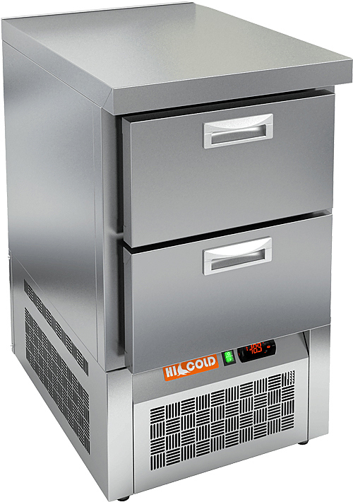 Холодильный стол HICOLD SNE 2/TN O используется на предприятиях общественного питания, торговли и пищевых производствах для обработки различных ингредиентов и хранения продуктов, напитков и кухонных принадлежностей. Модель оснащена электронной панелью управления, динамической системой охлаждения, автоматической оттайкой, ящиками и регулируемыми ножками. Материал корпуса и столешницы - высококачественная нержавеющая сталь.
