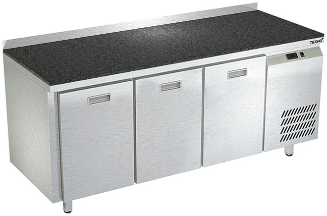 Холодильный стол Техно-ТТ СПБ/О-423/03-1807 предназначается для раскатки теста, обработки, охлаждения и кратковременного хранения продуктов и напитков на предприятиях общественного питания, торговли и пищевых производствах. Секции оснащены направляющими и ящиками с доводчиками. Материал корпуса - нержавеющая сталь AISI 430, материал столешницы - гранит (толщина 20 мм), материал задней панели и дна - оцинкованная сталь.