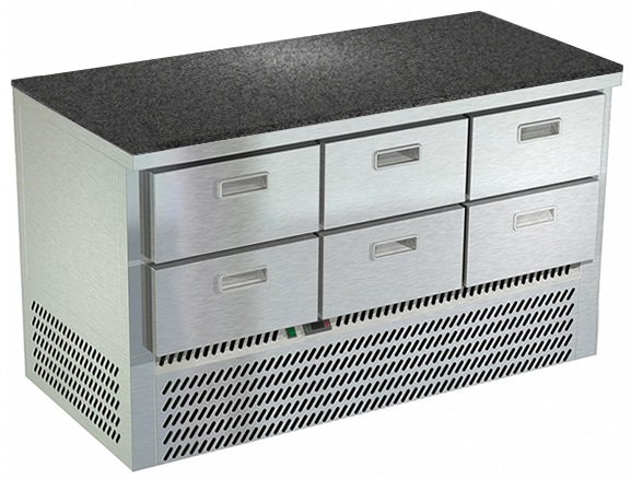 Холодильный стол Техно-ТТ СПН/О-323/06-1406 предназначается для раскатки теста, обработки, охлаждения и кратковременного хранения продуктов и напитков на предприятиях общественного питания, торговли и пищевых производствах. Секции оснащены направляющими и ящиками с доводчиками. Материал корпуса - нержавеющая сталь AISI 430, материал столешницы - гранит (толщина 20 мм), материал задней панели и дна - оцинкованная сталь.