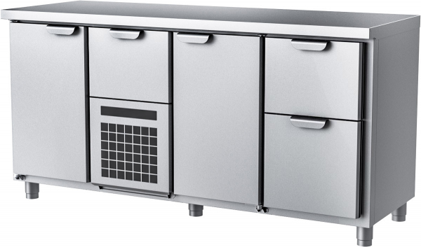 Холодильный стол HappyChef TC BD 1-CBR-1-2 используется на предприятиях общественного питания, торговли и пищевых производствах для хранения и обработки продуктов питания в охлажденном виде. Модель оснащена быстросъемными модулями, моющимся фильтром и регулируемыми ножками. Материал корпуса - высококачественная нержавеющая сталь AISI 430, материал столешницы - высококачественная нержавеющая сталь AISI 304 (толщина 2 мм).