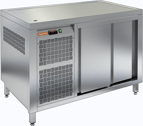 Закрытый стол с охлаждаемой поверхностью HICOLD SO-15/6 SD используется на предприятиях общественного питания, торговли и пищевых производствах для кратковременного хранения, демонстрации и разделки сырого мяса и рыбы, производства карамели и других кондитерских изделий, требующих пониженной температуры изготовления, а также для приготовления и порционирования суши и роллов и других готовых блюд. Стол оснащен холодильным агрегатом сбоку и дверьми-купе. Материал корпуса и столешницы - нержавеющая сталь.