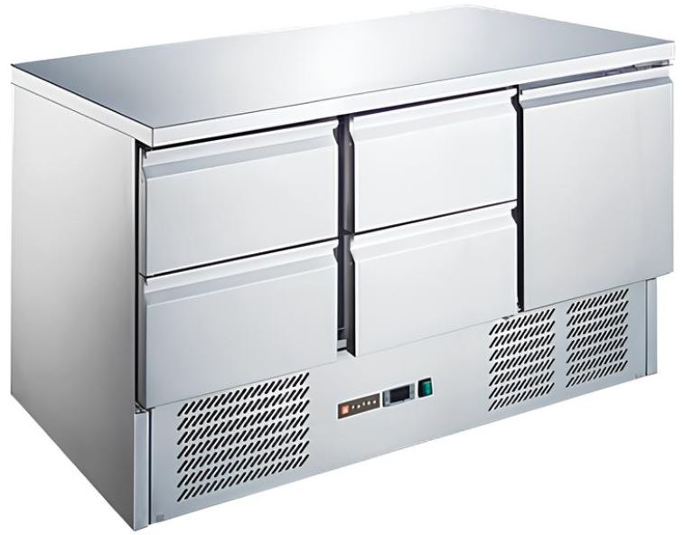 Холодильный стол Tatra TRTGNL1D4 TN используется на предприятиях общественного питания, торговли и пищевых производствах для охлаждения и кратковременного хранения различных блюд, напитков и продуктов, а также для раскатки теста и обработки ингредиентов. Модель оснащена электронным контроллером, цифровым дисплеем и регулируемыми по высоте ножками. Материал корпуса и столешницы - высококачественная нержавеющая сталь, материал теплоизоляции - полиуретан толщиной 35 мм.