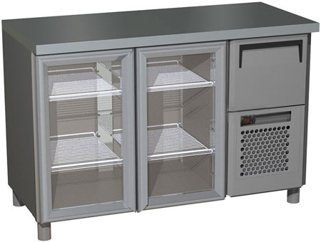 Холодильный стол Сarboma T57 M2-1-G 0430-1(2)9 (BAR-250С) предназначен для размещения кофемашин и охлаждения и хранения молока и кофейных зерен на предприятиях общественного питания и торговли. Модель оснащена 4 полками, охлаждаемым ящиком под агрегатом, планкой под выбивание холдера и регулируемыми ножками высотой от 90 до 110 мм. Цельнозаливной корпус выполнен из нержавеющей стали, дверца - из стекла.