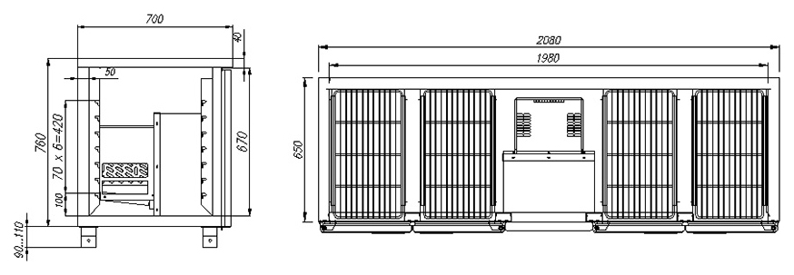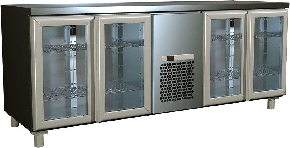 Холодильный стол Carboma T70 M4-1-G 9006 (4GNG/NT 1111) предназначен для раскатки теста, обработки ингредиентов для приготовления блюд, охлаждения и кратковременного хранения скоропортящихся продуктов и напитков на предприятиях общественного питания и торговли. Модель оснащена дверью с доводчиком и регулируемыми по высоте ножками высотой от 90 до 110 мм. Цельнозаливной корпус выполнен из оцинкованной стали толщиной 50 мм, столешница - из нержавеющей стали, дверцы - из стекла.