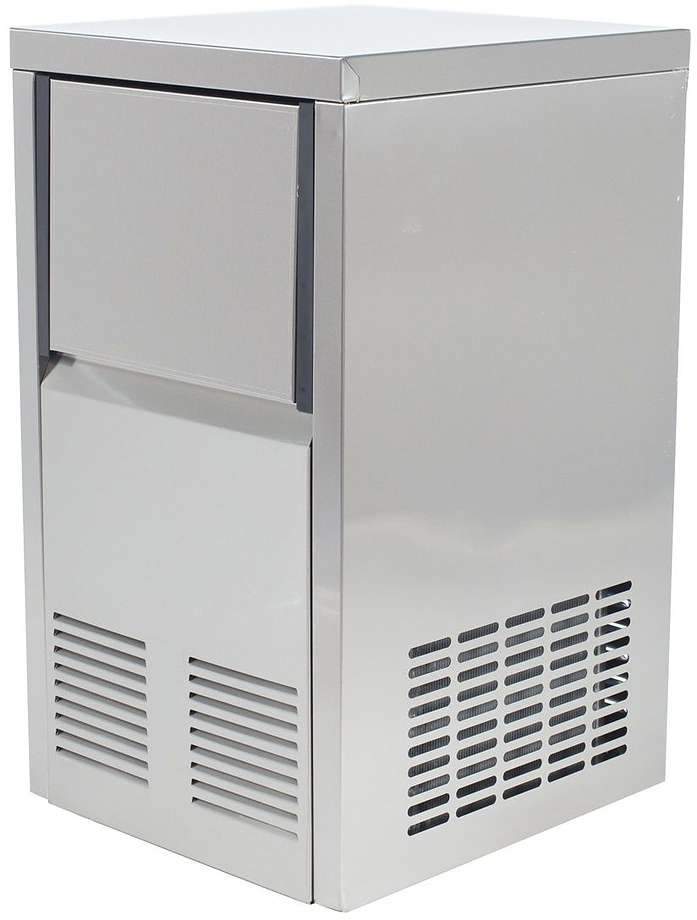 Льдогенератор EKSI ECB-25 предназначается для производства кубикового льда, широко использующегося для охлаждения алкогольных и безалкогольных коктейлей, соков, морсов и прочих напитков на предприятиях общественного питания, торговли и пищевых производствах. Автоматическая остановка работы при наполненности бункера. Аппарат установлен на ножках с возможность регулировки высоты. Материал корпуса - нержавеющая сталь.