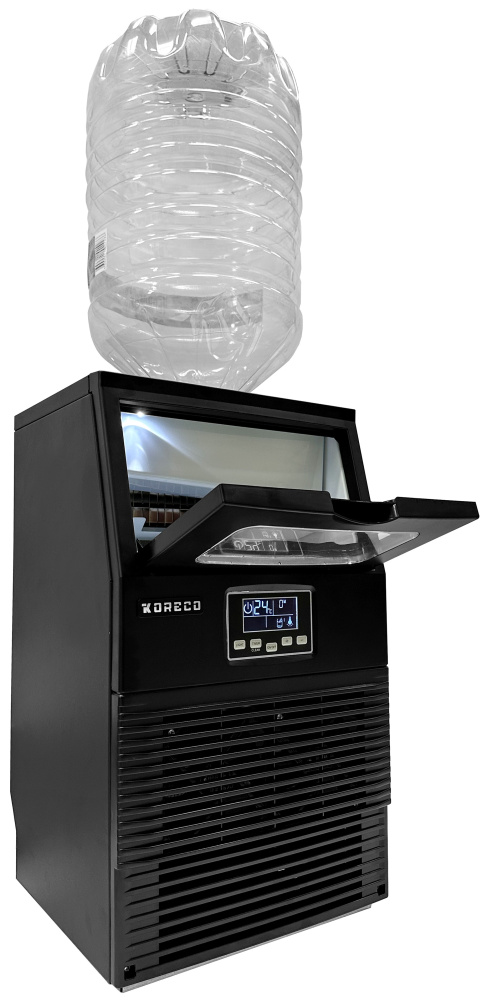 Льдогенератор Koreco AZ 30/4 B C используется на предприятиях общественного питания, торговли и пищевой промышленности для производства кубикового льда высокой плотности и кристальной чистоты. Модель оснащена электронным управлением, окном в дверце для контроля процесса и подсветкой. Материал корпуса - эмалированная сталь.