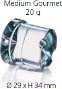 Лед цилиндрической формы "гурмэ" используется для охлаждения алкогольных и безалкогольных напитков, а также для приготовления коктейлей в первоклассных гостиницах, изысканных ресторанах и элитных барах. Каждый кубик представляет собой настоящее произведение искусства: кристально прозрачный, идеальной формы, твердый и долго не тающий лёд, по форме напоминающий наперсток.