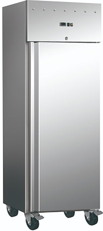 Морозильный шкаф Yukon GN650BT используется для демонстрационной выкладки, заморозки и хранения продуктов питания на предприятиях общественного питания, торговли и пищевых производствах. Модель оснащена электронным термостатом, цифровым дисплеем, автоматическим размораживанием, автоматическим испарением конденсата, вентилируемым охлаждением и передвижными колесиками. Материал изделия - высококачественная нержавеющая сталь с закругленными внутренними краями.
