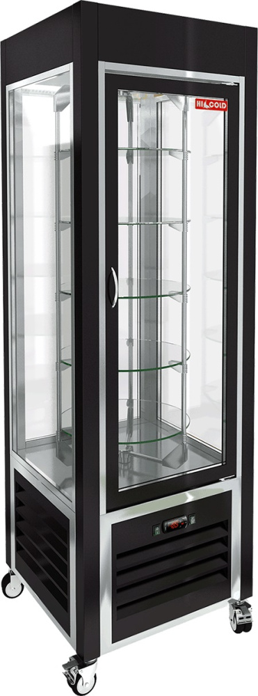 Кондитерская витрина HICOLD VRC 350 R Black FR используется на предприятиях общественного питания и торговли для демонстрации, охлаждения и кратковременного хранения кондитерских изделий и десертов. Модель оснащена 5 вращающимися полками, светодиодной подсветкой и колесами со стопорами. Корпус выполнен из окрашенной стали.
