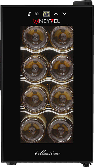 Винный шкаф Meyvel MV08-TB1 используется на предприятиях общественного питания, торговли, пищевых производствах и в домашних условиях для демонстрационной выкладки, хранения и создания температурных условий, сохраняя все вкусовые свойства вина. Модель оснащена сенсорным управлением, автоматической разморозкой, электронным термостатом и LED-подсветкой. Материал корпуса - окрашенная сталь в черный цвет, материал двери - пластик и двойное стекло с защитой от УФ-лучей, материал полок - хромированный металл.