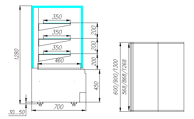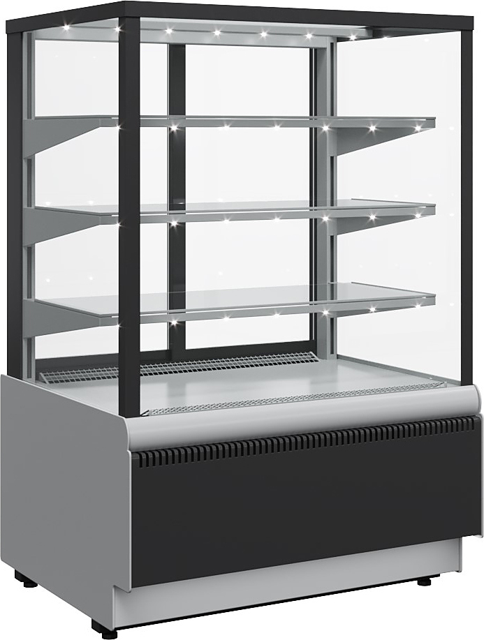 Кондитерская витрина Carboma KC70 VV 0,6-1 Standard Техно используется на предприятиях общественного питания и торговли для демонстрации, охлаждения и кратковременного хранения тортов, пирожных и других кондитерских изделий. Модель оснащена 4-х сторонним остеклением, 3 охлаждаемыми стеклянными полками и регулируемыми ножками высотой от 30 до 50 мм. Корпус выполнен из окрашенной стали с ППУ-изоляцией, раздвижные задние створки на роликах - из оргстекла.