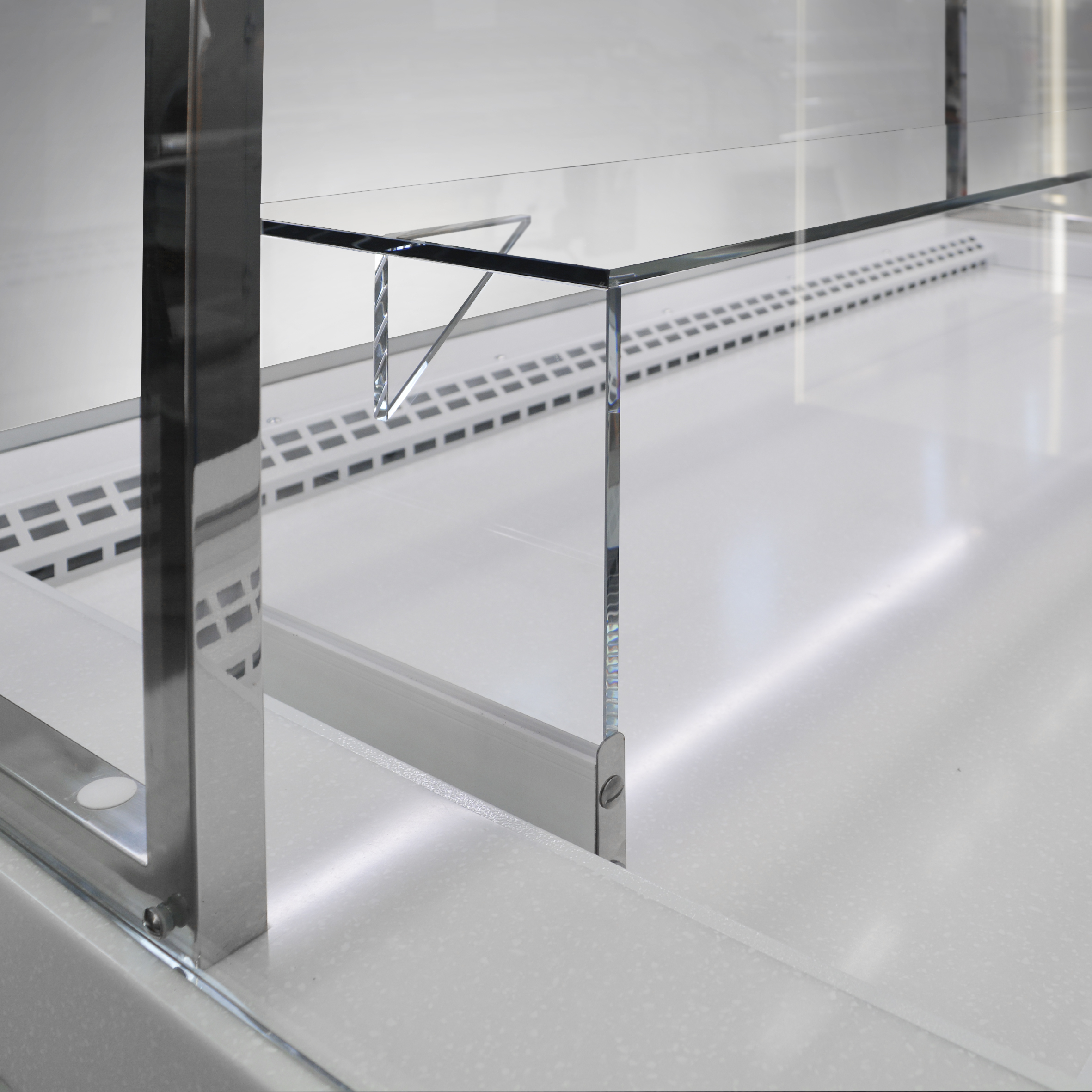 Витрина кондитерская Finist Maria Msv-17-9 используется для демонстрационной выкладки, охлаждения и хранения кондитерских и хлебобулочных изделий на предприятиях общественного питания и торговли. Модель оснащена микропроцессорным блоком, автоматической оттайкой, охлаждаемой камерой, выдвижной полкой, подсветкой и дверьми-купе. Материал фронтальных и боковых панелей облицовки - МДФ панели, материал купола и полок - просветленное стекло, материал зоны выкладки и столешницы - искусственный камень.