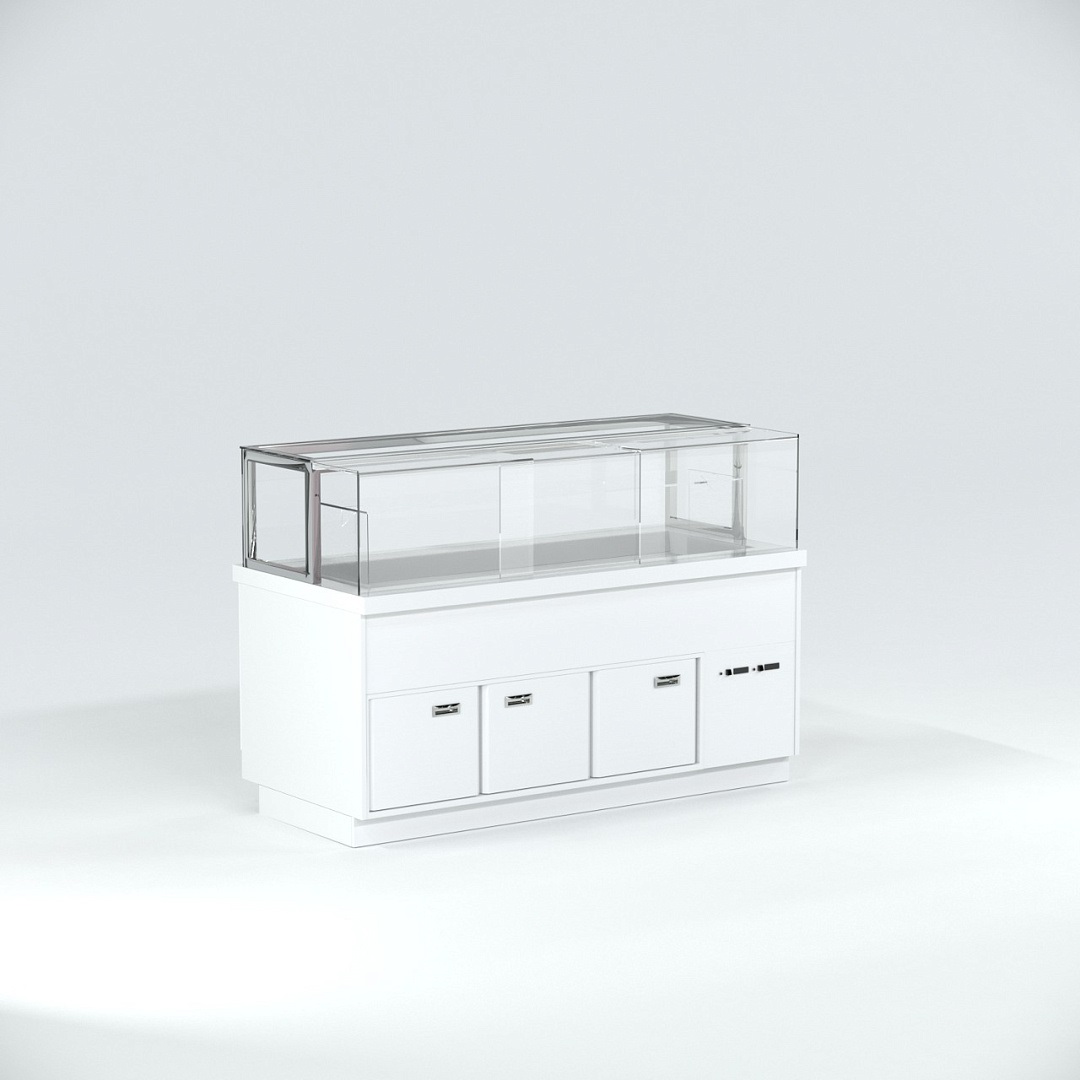Витрина кондитерская Finist Maria Ms-21-9 используется для демонстрационной выкладки, охлаждения и хранения кондитерских и хлебобулочных изделий на предприятиях общественного питания и торговли. Модель оснащена микропроцессорным блоком, автоматической оттайкой, выдвижной полкой, подсветкой и дверьми-купе. Материал фронтальных и боковых панелей облицовки - МДФ панели, материал купола и полок - просветленное стекло, материал зоны выкладки и столешницы - искусственный камень.