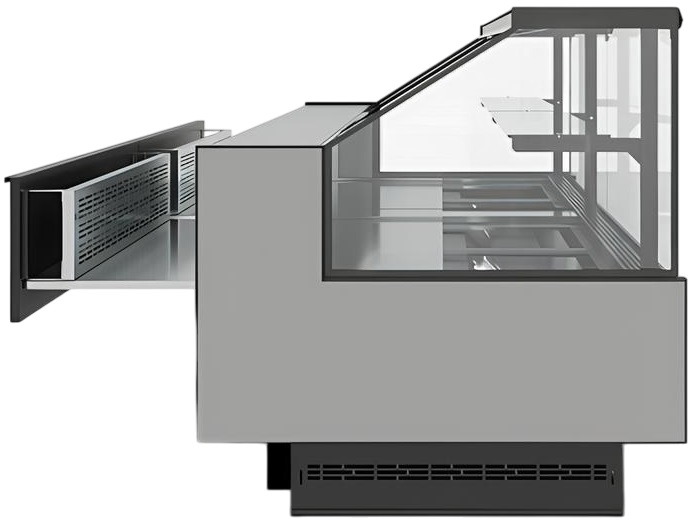Витрина кондитерская Carboma Bavaria 4 GC110 VM 1,25-1 используется на предприятиях общественного питания, торговли и пищевых производствах для охлаждения, демонстрационной выкладки и кратковременного хранения кондитерских и хлебобулочных изделий. Модель оснащена микропроцессорным блоком управления, естественной оттайкой, выдвижными ящиками и LED-подсветкой. Материал экспозиционной площади и столешницы - шлифованная нержавеющая сталь.