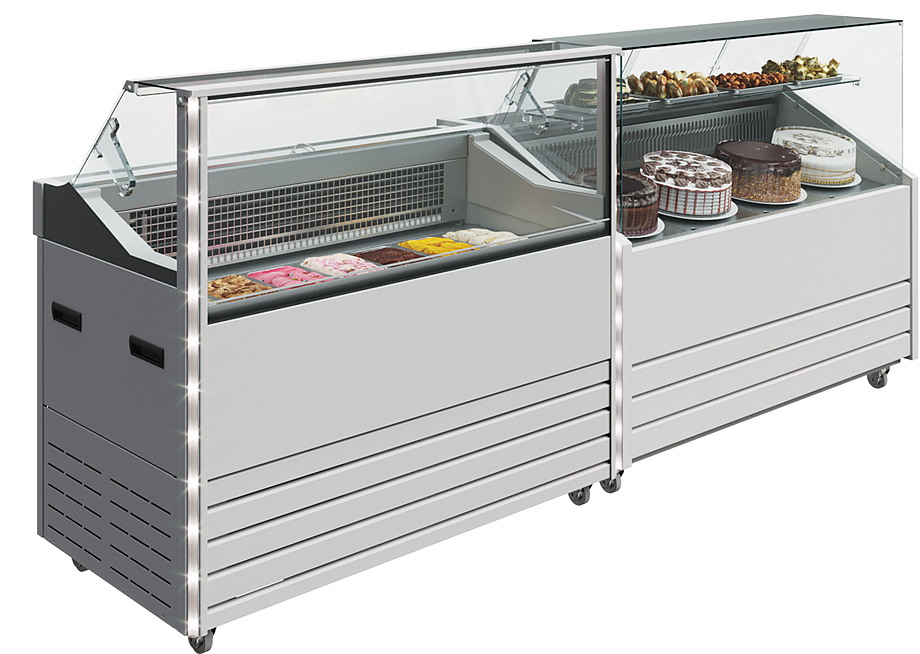 Опционально могут быть заказаны гастроемкости для мороженого из нержавеющей стали, RGB подсветка стоек, индивидуальной цветовое исполнение и брендирование фронтальной панели.