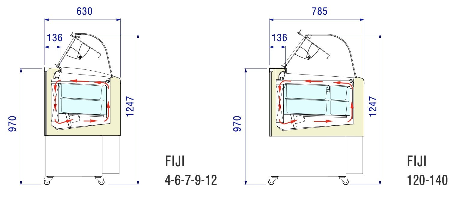 Витрина для мороженого ISA Fiji 140 используется на предприятиях общественного питания и торговли для демонстрации и хранения мороженого, сорбета и йогурта-мороженого. Каркас изготовлен из углеродистой стали, окрашенной порошковой краской, внутренняя и внешняя оболочки - из пластифицированной стали, поворотная крышка со стороны продавца - из метакрилата. Цельный корпус имеет изоляцию из пенополиуретана, вспененного углекислотой, без использования озоноразрушающих веществ.