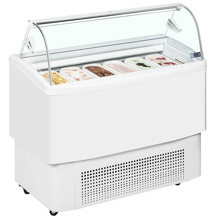 Витрина для мороженого ISA Fiji 120 используется на предприятиях общественного питания и торговли для демонстрации и хранения мороженого, сорбета и йогурта-мороженого. Каркас изготовлен из углеродистой стали, окрашенной порошковой краской, внутренняя и внешняя оболочки - из пластифицированной стали, поворотная крышка со стороны продавца - из метакрилата. Цельный корпус имеет изоляцию из пенополиуретана, вспененного углекислотой, без использования озоноразрушающих веществ.