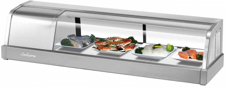 Настольная холодильная витрина для суши Turbo air SAKURA-70 используется на предприятиях общественного питания и торговли для демонстрации, охлаждения и кратковременного хранения японских блюд: суши, роллов, сашими и т.д. Равномерное распределение холода по вертикали уберегает продукты от замораживания, высыхания и заветривания. Материал корпуса - нержавеющая сталь. Современный дизайн со стеклом LOW-E.