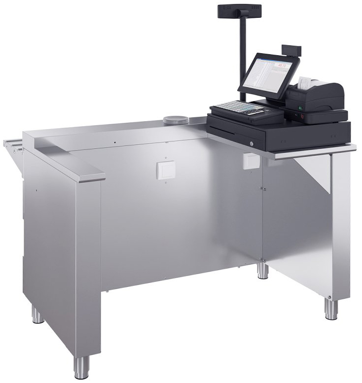 Кассовый стол ATESY Ривьера КСП-1120-02 используется на предприятиях общественного питания и торговли для оборудования рабочего места продавца-кассира. Модель оснащена розеткой для подключения кассового аппарата, расположенной со стороны обслуживающего персонала. Корпус и направляющая для подносов выполнены из нержавеющей стали AISI 430, столешница - из нержавеющей стали и усилена листом ламинированной ДСП толщиной 16 мм, ножки - из нержавеющей стали с пластиковой опорной частью.