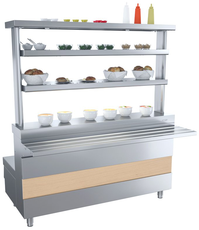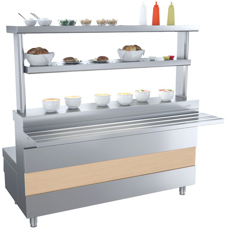 - Специальные отверстия позволяют установить 1-но, 2-х или 3-х ярусную полку на выбор, что дает возможность увеличить выкладку товара (полка приобретается отдельно) - светильник полки (только у 2-х или 3-х ярусных полок) обеспечивает подсветку столешницы