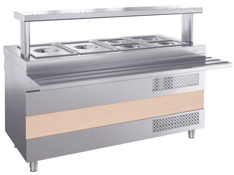 - Предназначен для размещения гастроемкостей формата GN 1/1, GN 1/2 и GN 1/3 (при помощи перемычек, входящих в комплект поставки) максимальной глубиной 150 мм